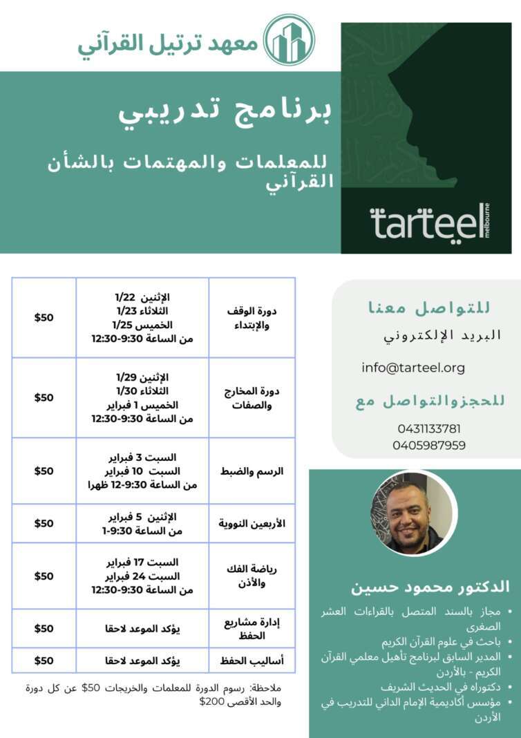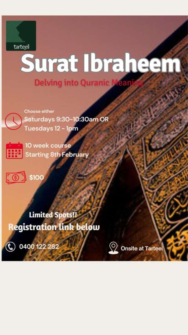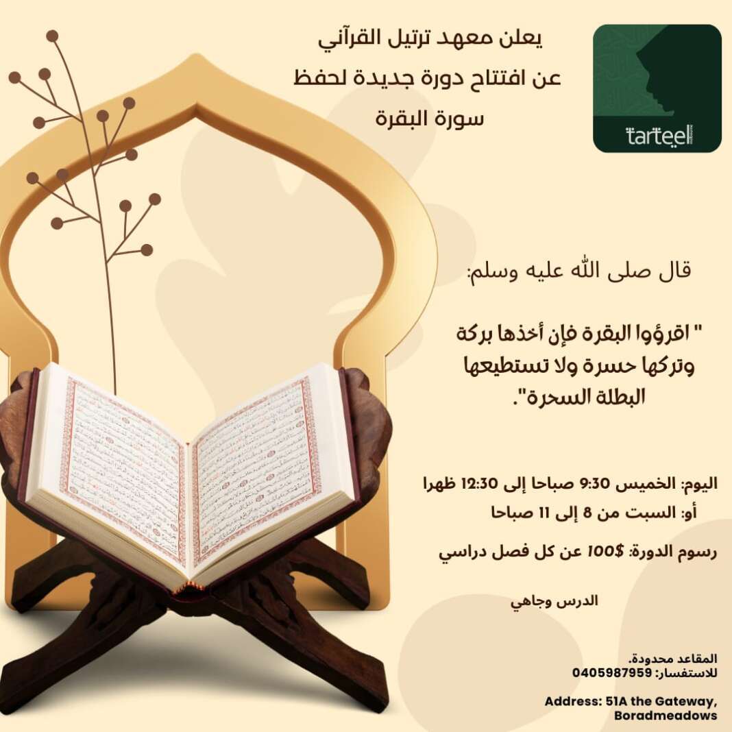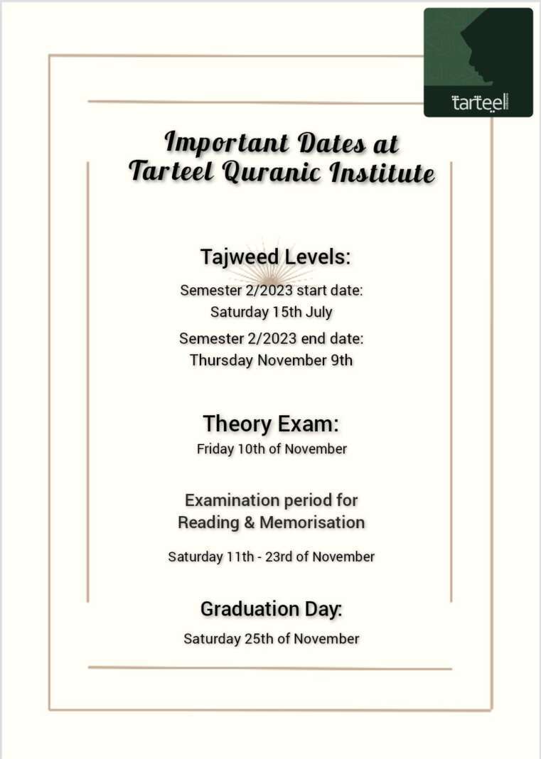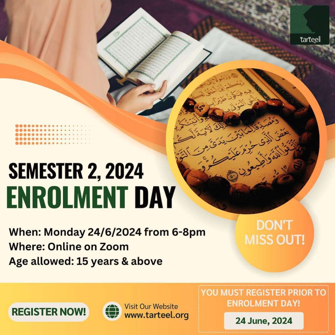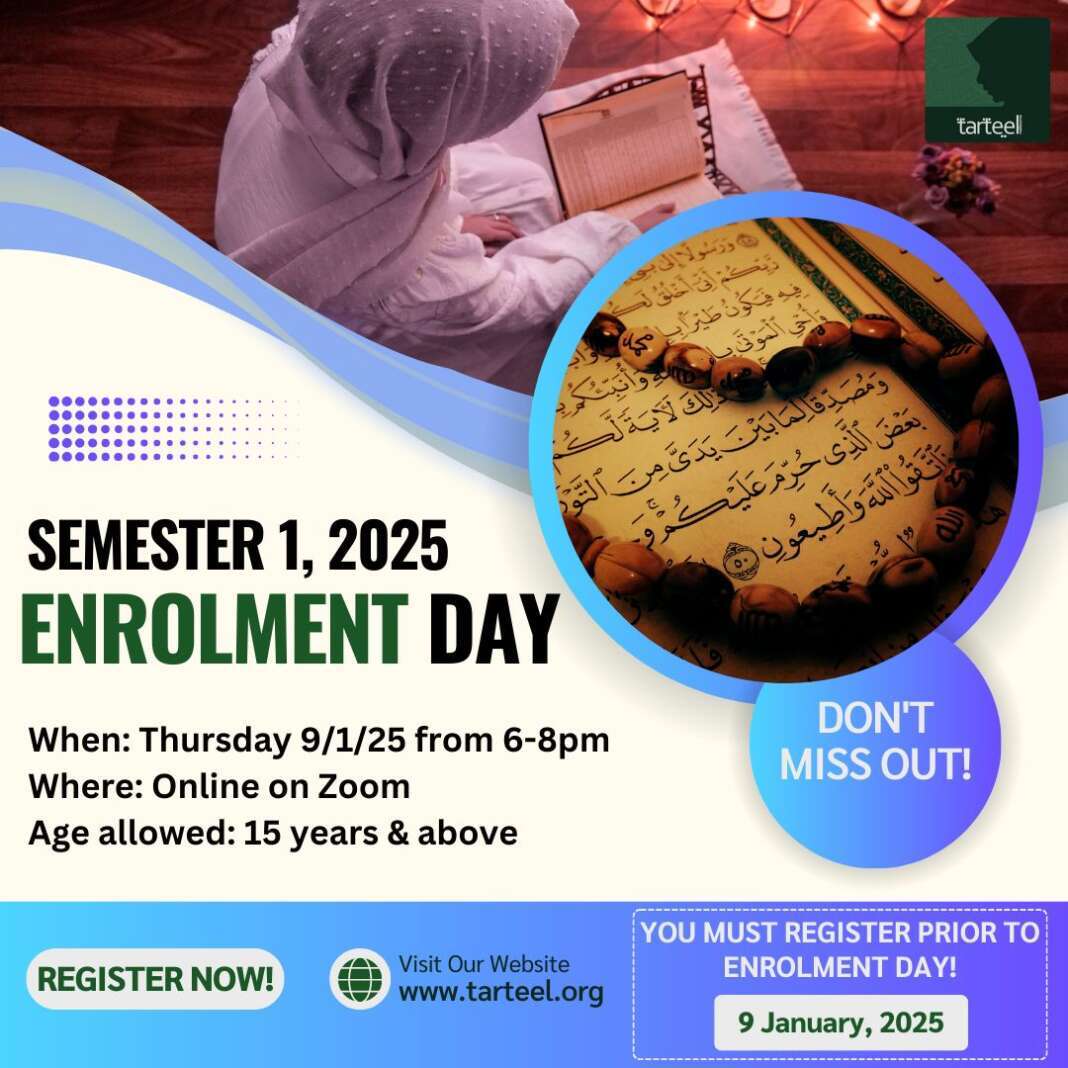 - Tarteel Enrolment Intake for Semester 1 on Thursday 11/1/2024